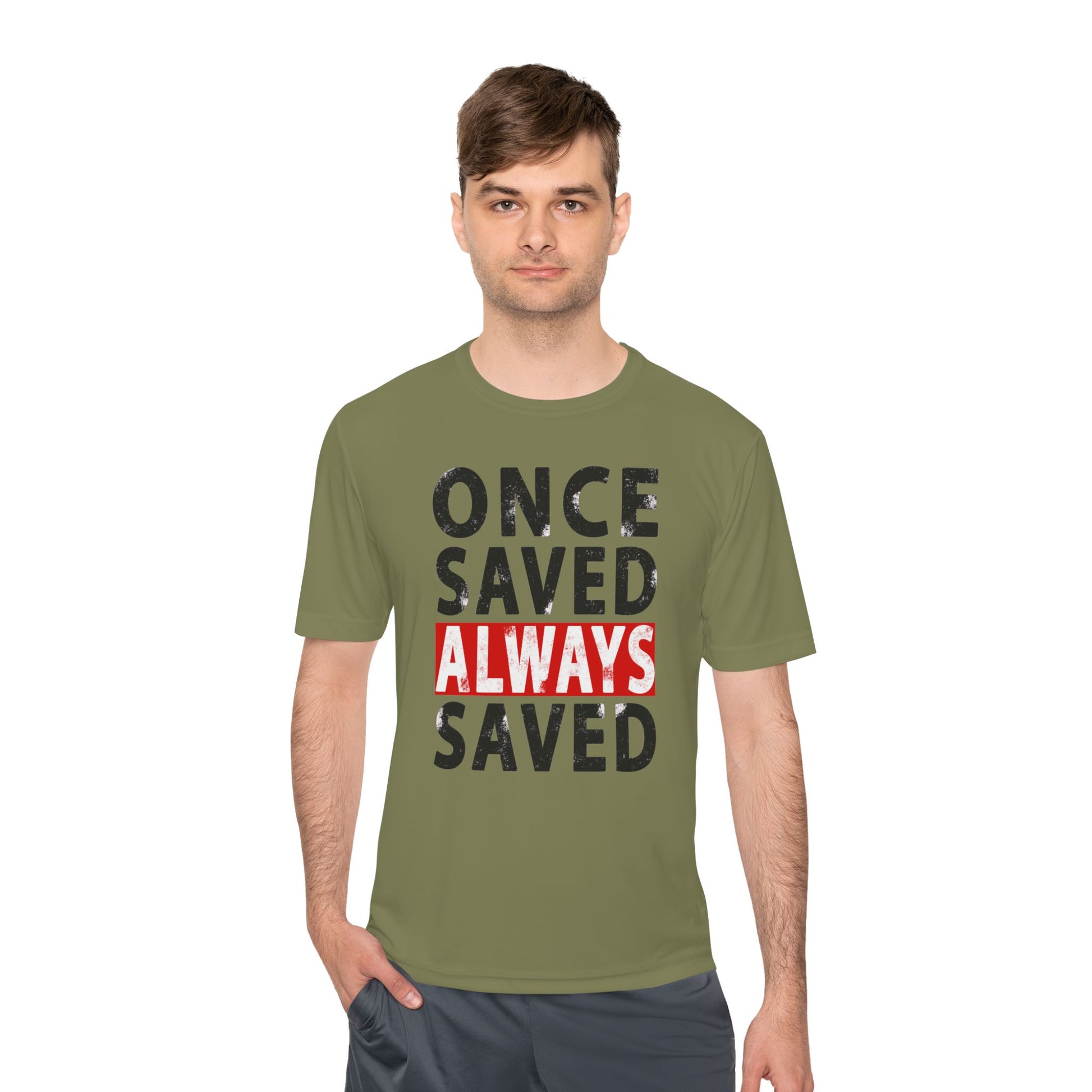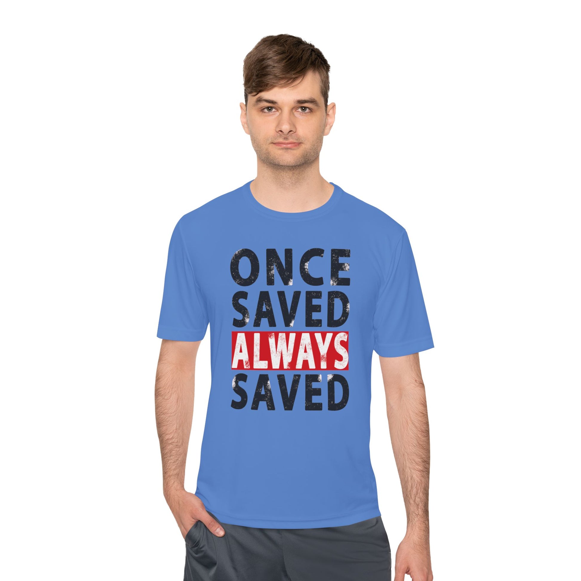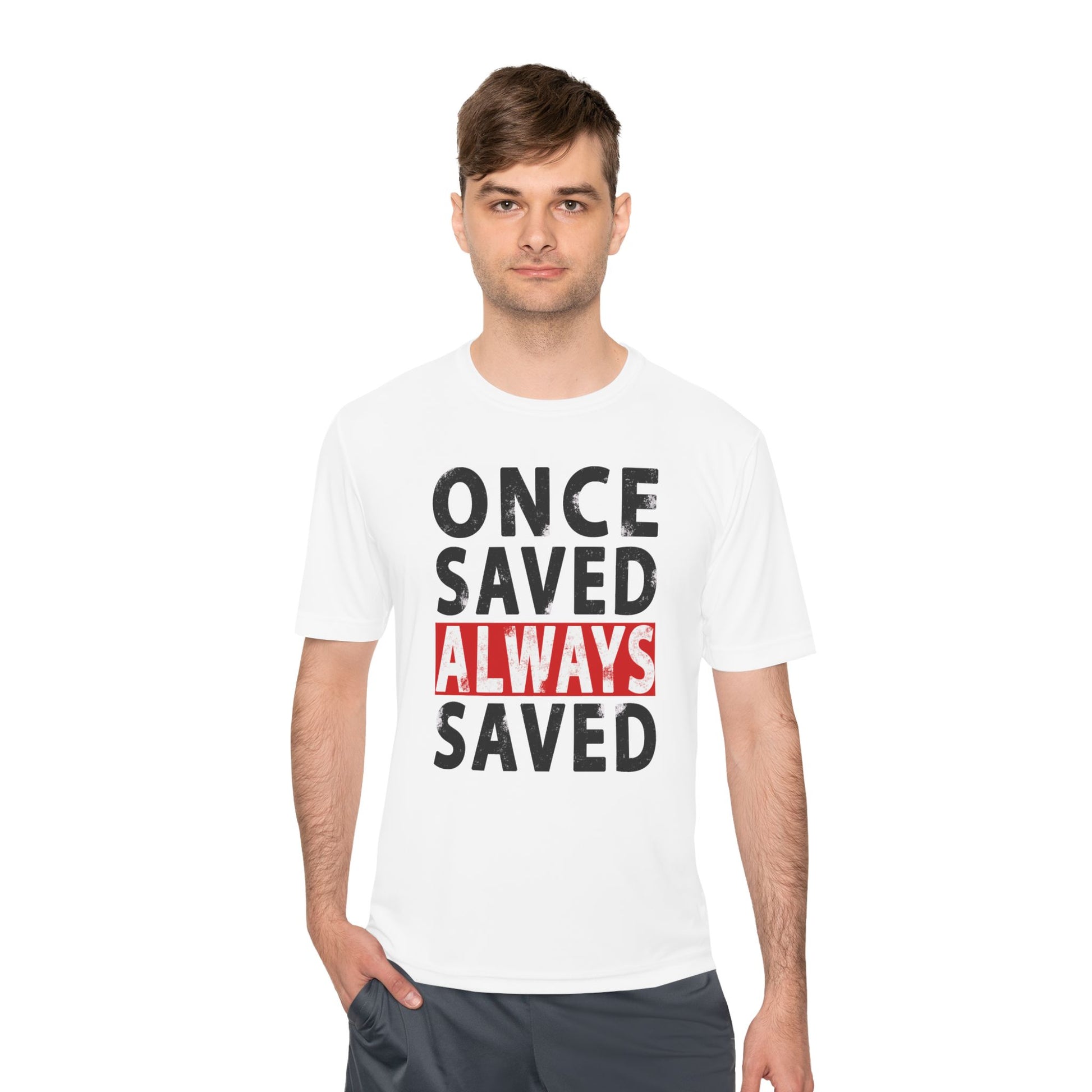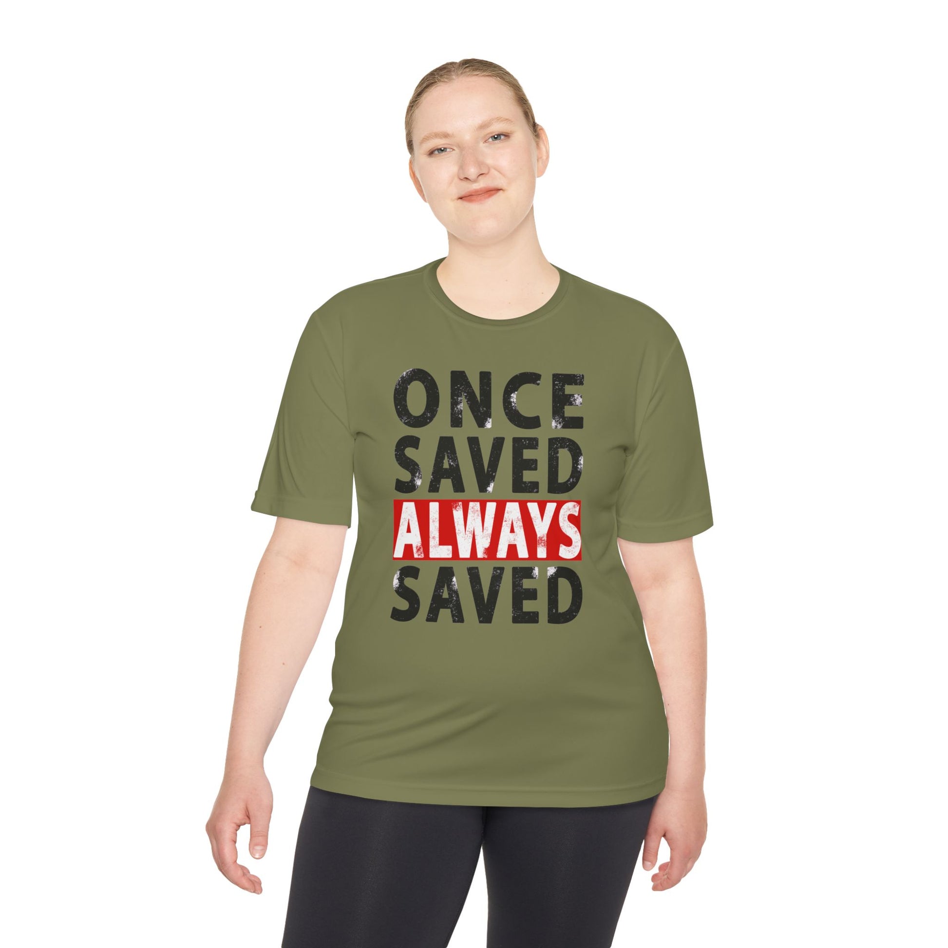 Introducing the perfect blend of comfort and style with this Once Saved Always Saved Dri-Fit Tee. Designed for those who value both function and faith, this tee is great for everyday wear, special gatherings, or sports