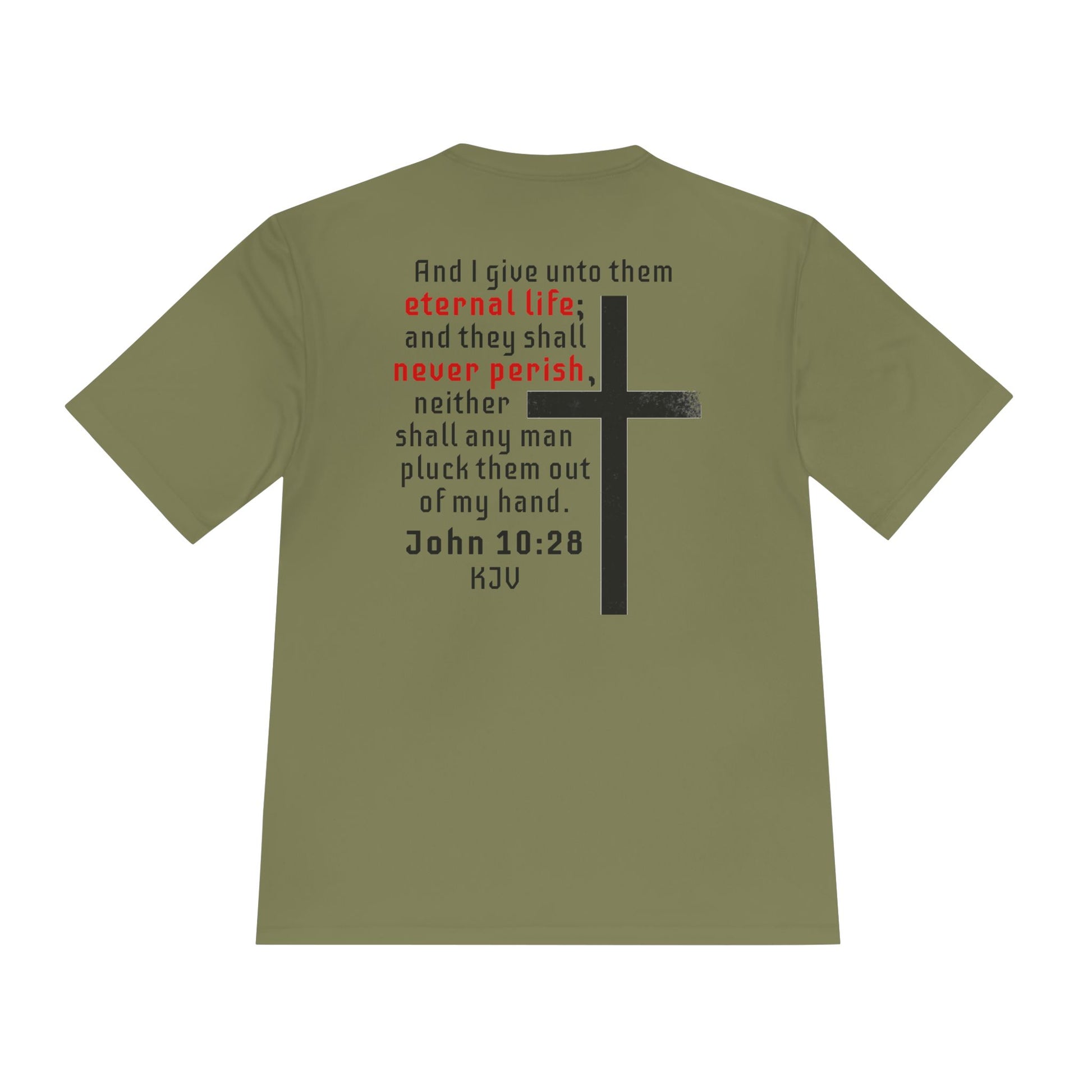 Once Saved Always Saved - John 10:28 - Dri-Fit T-shirt