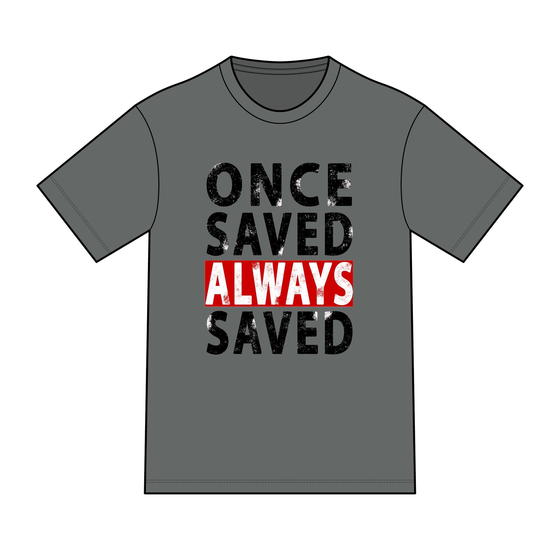 This T-Shirt features a design centered around the theme of 'Once Saved Always Saved' salvation, giving a sense of faith and reassurance. Perfect for those who resonate with this belief and want to wear it proudly. Ideal for religious holidays, church events, and everyday wear for adults.